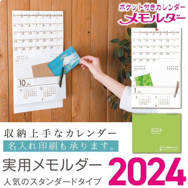 ポケット付きカレンダー2024年、メモを入れるポケットがついています。