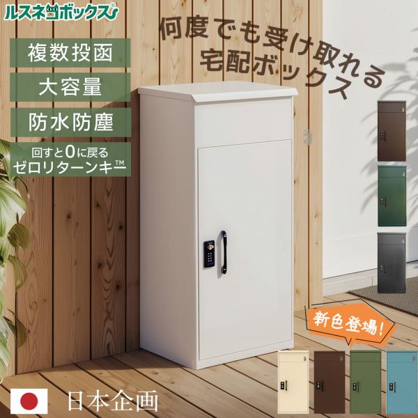 宅配ボックス後付ポスト、ルスネコボックス、レビュー特典あり、4色から選べます、組み立て不要、防水、取り出し口(31×34×H62)内寸(35x30xH65)
