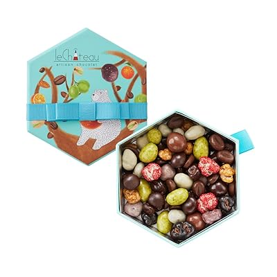 可愛いカラフルな粒チョコや本格ショコラ、ボルドー産ワイン漬けレーズン、白イチジク、香り高いアラビカコーヒー豆、ピスタチオ、オレンジ、ヘーゼルナッツなど、他にも沢山のフレーバーが味わえます、