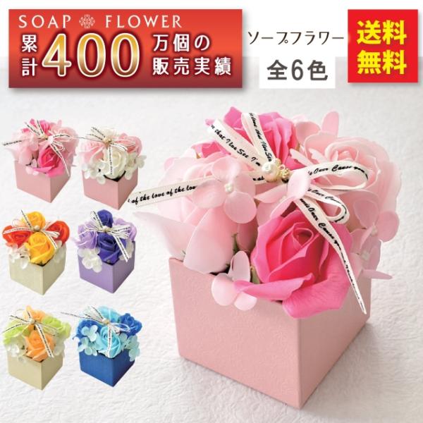 ソープフラワーボックス、ローズピンクイエローパープルブルーなど6種類