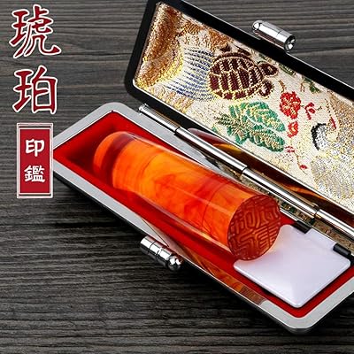 琥珀、(樹脂琥珀)開運、鶴亀印鑑セット、ケース付き、お祝い、プレゼントに最適!6つの書体から選べます。